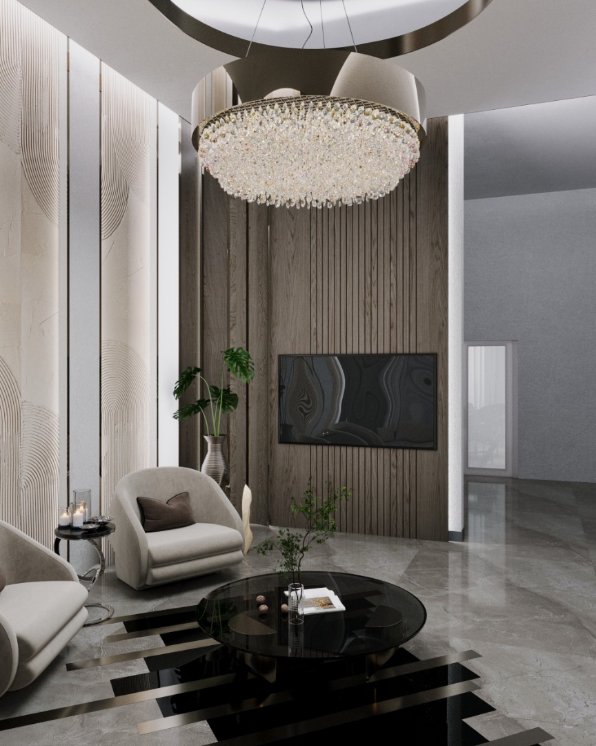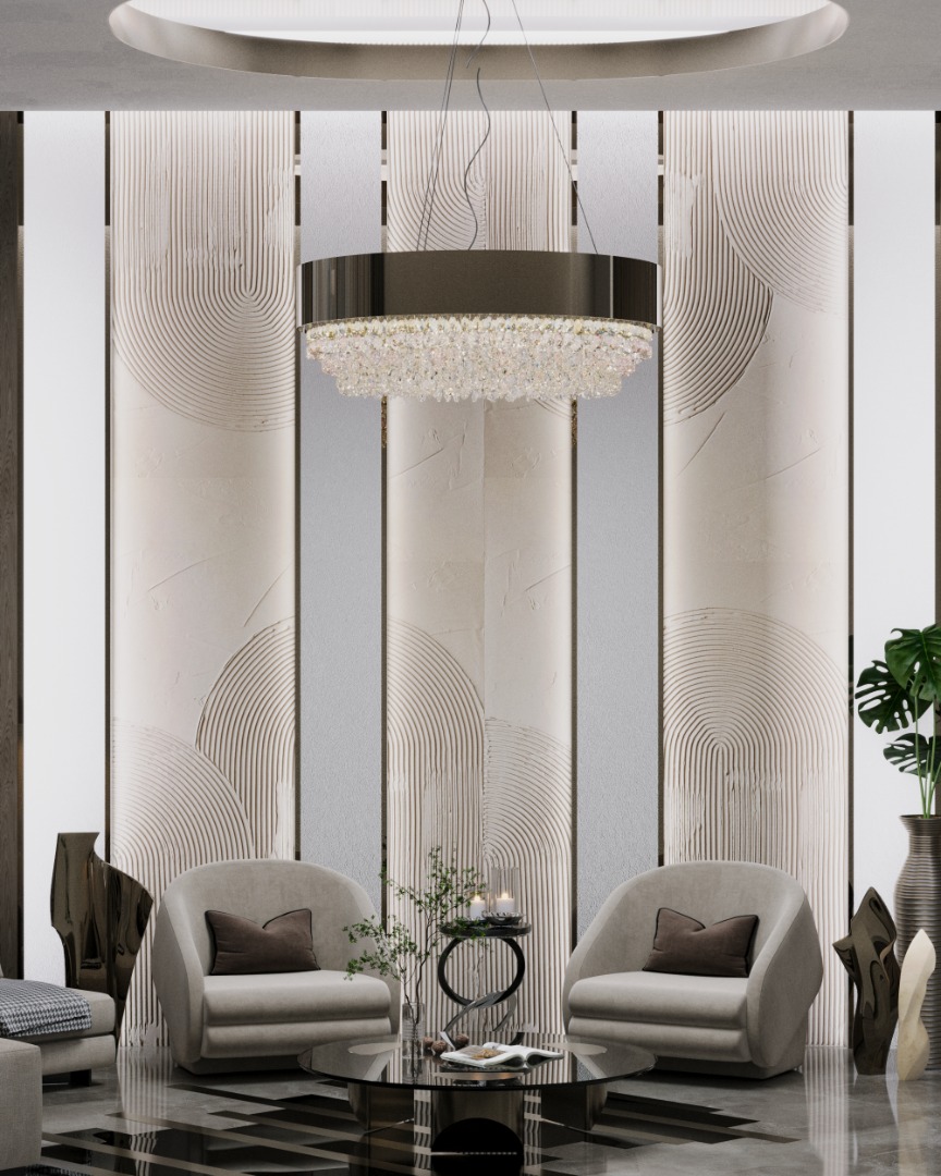 Estetisyen müşterimiz için tasarlanan bekleme alanı, yüksek tavanıyla geniş bir hissiyat sunarak misafirlere ferah bir atmosfer sağlıyor. Duvarlarda el işçiliğiyle yapılan özel sıvalar ve dikkatlice düşünülmüş ışık detayları, mekanın merkezinde yer alarak oturma alanının ana ritmini oluşturuyor. Bekleme alanının ikinci bölümünde ise, doğanın güzelliğini yansıtan simgelerle zenginleştirilmiş bir rölyef detayı yer alıyor. Bu detaylar, mitolojik motiflerle birleşerek doğanın yaşam verici enerjisini ve güzelliğini vurguluyor. Misafirlerin huzur içinde vakit geçirebileceği ferah ve rahat bir ortam oluşturulurken, kullanılan mobilyalarla da mekanın ruhu tam anlamıyla yansıtılıyor. Renk seçimleri ve mobilya düzenlemeleri, mekanın estetik ve işlevselliğine katkıda bulunarak, iç mekanın bütünlüğünü ve ahengini tamamlıyor. Bu sayede, tasarlanan bekleme alanı sadece bir geçiş noktası olmaktan öte, misafirler için huzur verici ve keyifli bir konaklama noktası haline geliyor.